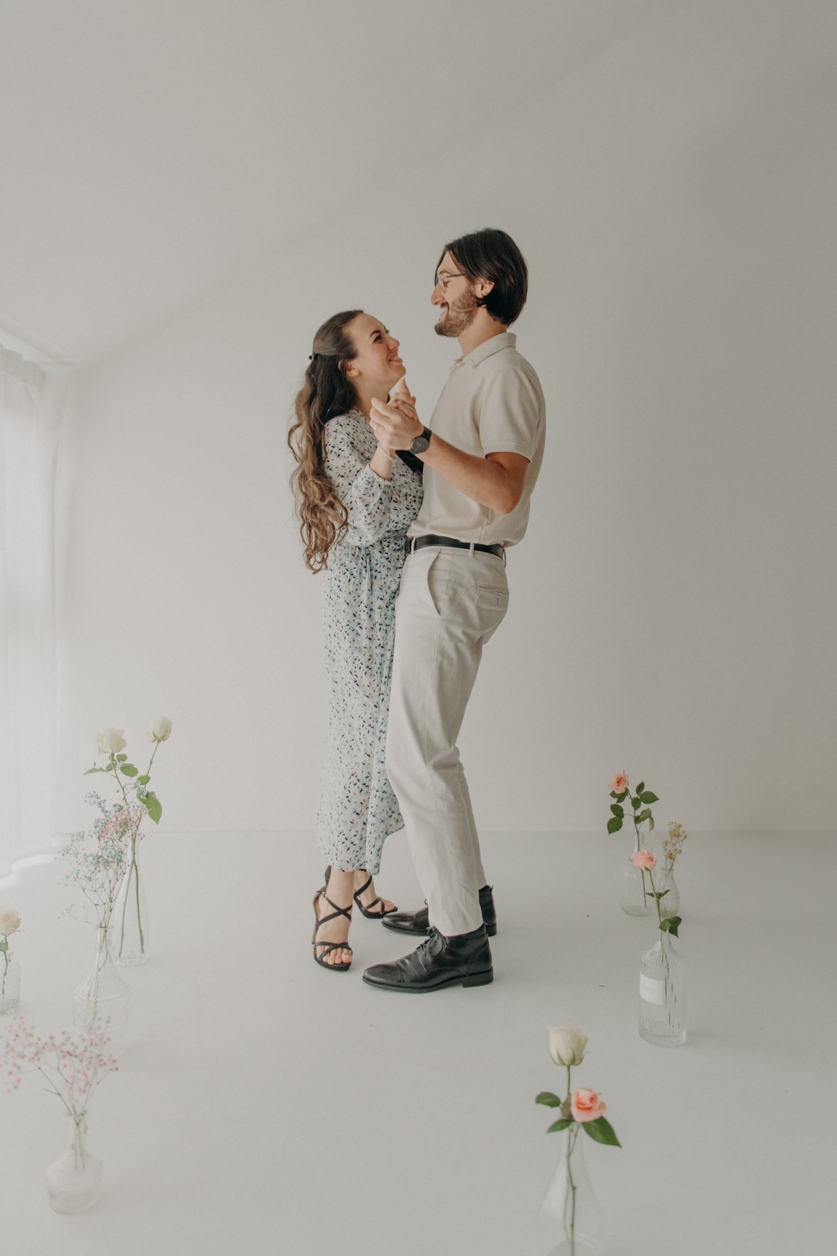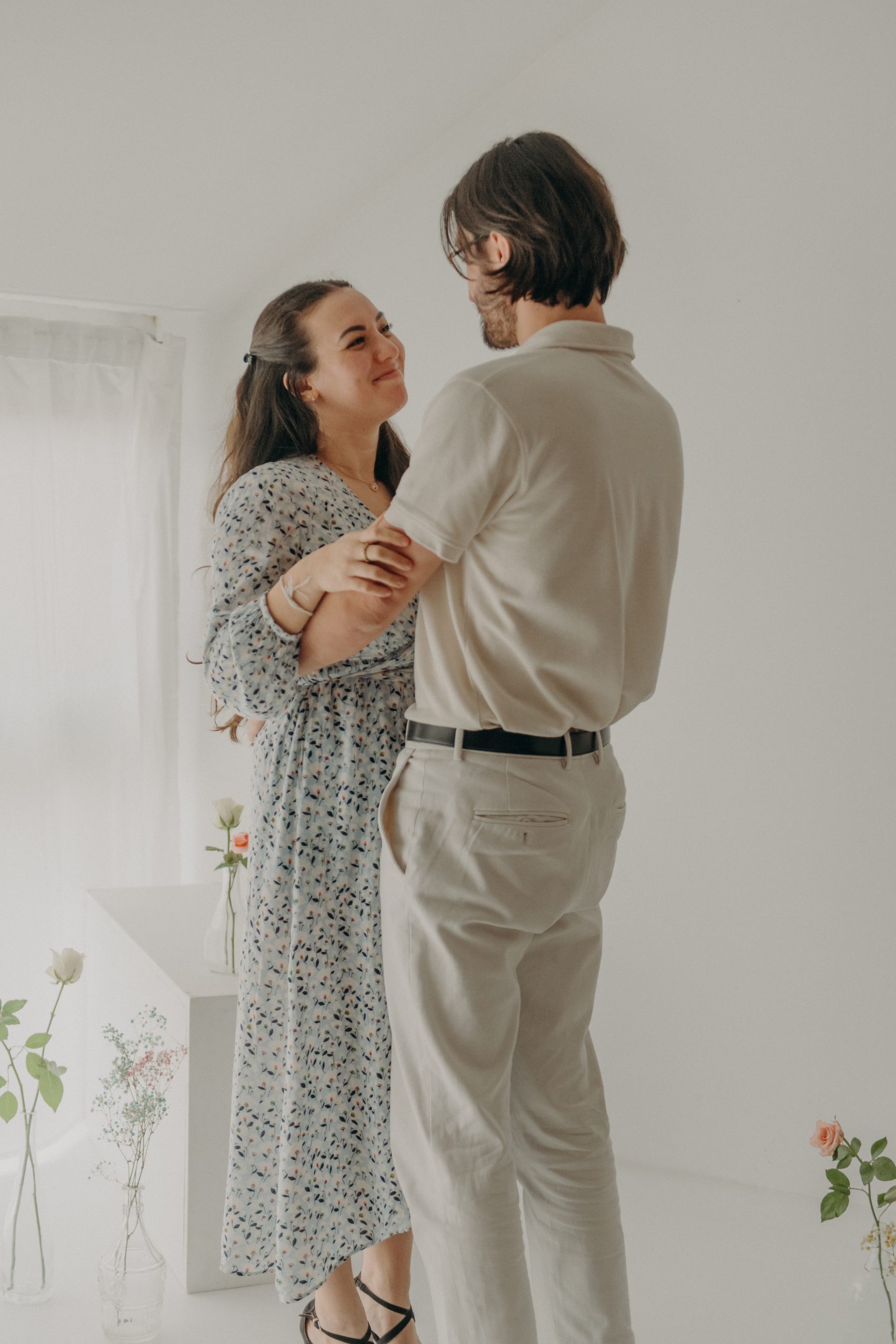 Nous avons opté pour un dress code coloré dans des tons doux et pastels. Pour les hommes, nous recommandons un costume et pour les femmes, une tenue habillée. Merci de ne pas porter de blanc.
